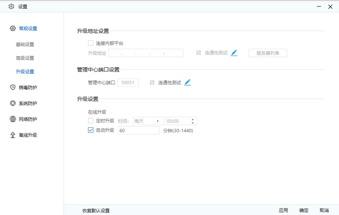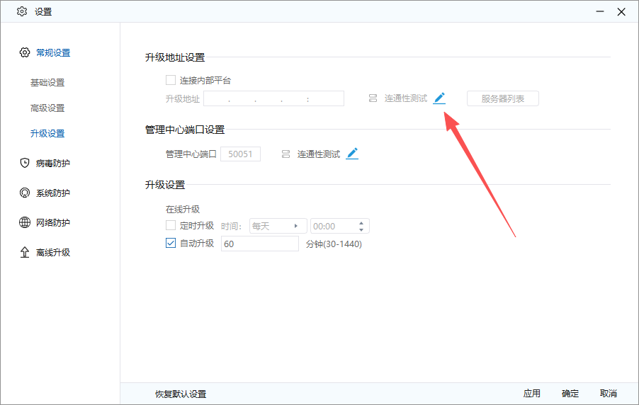 点击升级地址旁边的角标,然后输入控制中心、IP地址:202.206.247.88,端口号是9000,然后保存